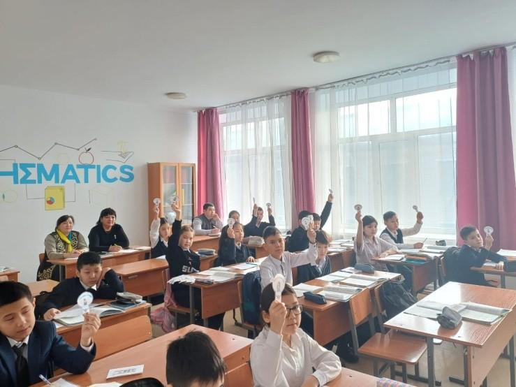 5 «Б» сыныбында математика пәнінен «Ондық бөлшектерді қосу және азайту» тақырыбында ашық сабақ өткізілді. Сабақтың басында ең алдымен амандасып , оқушылар түгелделді. Қысқа мерзімді жоспарға сәйкес жалпы сабақ мақсаты айтып өтілді. «Жылы лебіз» әдісі бойынша, яғни додекаэдр фигурасында жазылған жақсы тілектерді оқып, оқушылар бір-біріне бере отырып сенімділік пен позитивті атмосфера қалыптастырды. Сыныпта ережелер мен мәліметтерге сүйеніп, өтілген тақырыпқа есептер шығарылды. Деңгейлік тапсырмаларды орындады. А деңгейлі 3 есеп әрқайсысы 1-баллмен. В деңгейлі 3 есеп 2-баллмен. С деңгейлі 3 есеп 3-баллмен бағаланды. Жиыны 9 есеп болды. Оқулықпен жұмыс кезінде В деңгейлі 4 есеп қарастырылды. Бекіту тапсырмасына да 4 есеп алынып, шығарылды. Бағалауға конверт әдісі қолданылды. Әр дұрыс шыққан есепке доллар беріп отырылып, оқушылар жинап отырды. Сабақ соңында есімдері жазылып өткізілді. Оқушылар өте белсене, жарыса есеп шығарды. Сабаққа жалпы 19 оқушы қатысты. Оның ішінде үнемі 17 оқушы белсенділік танытып отырды. Қалған 2 оқушыға сыныптастары көмектесіп, бірігіп түсіндіре отырып шығаруға тырысты. Қолданылған әдіс-тәсілдер сабақтың негізгі мақсатына жетуге жақсы көмек берді деуге болады, себебі, сабақтың әр кезеңіне бөлінген уақыт оқушылардың дайындық деңгейіне сай болды. Жалпы сыныпта психологиялық климат жақсы болды, оқушылар өздерін еркін ұстап, өз ойларын ашық жеткізе білді . Сабақ соңында кері байланыс TikTok әдісі бойынша жүргізілді.