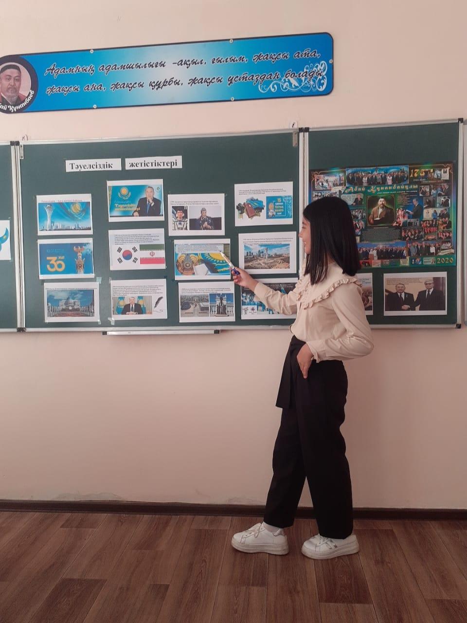 14 қыркүйек мектебімізде Қазақстан Тәуелсіздігінің 30 жылдығына орай "Тәуелсіздік жетістіктері" тақырыбында бірыңғай ашық тәрбие сағаты өтті. Ашық тәрбие сағаты - білім мен тәрбие беру, 30 жылда еліміз жеткен 30 жетістікті насихаттау.