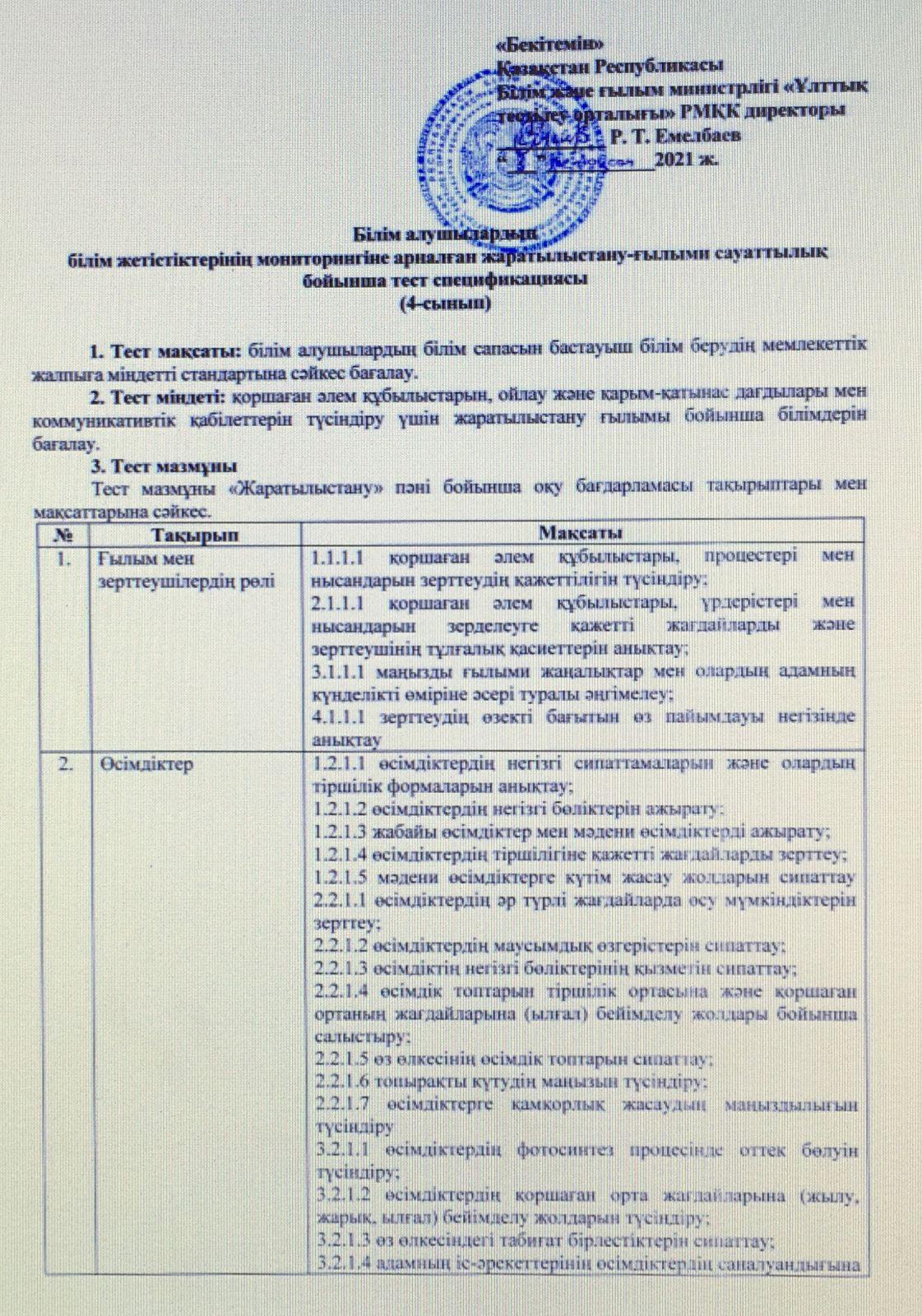» » Жаратылыстану - ғылыми сауаттылық спецификациясы (4-сынып )