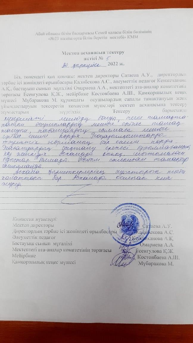 Мектеп асханасын тексеру актісі » Средняя общеобразовательная школа №23