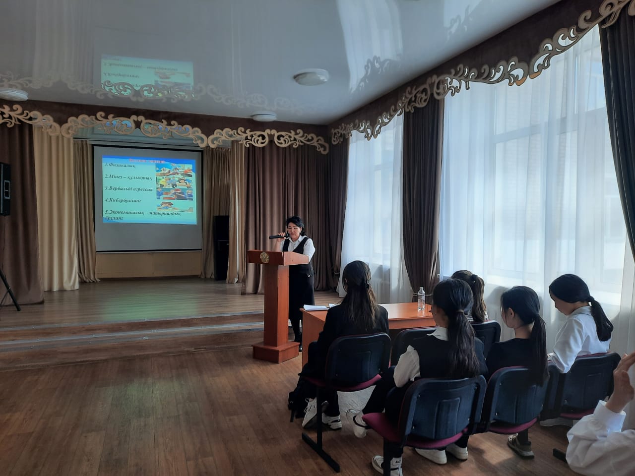 Бүгін мектеп психологтары, әлеуметтік педагог және директордың тәрбие ісі жөніндегі орынбасары ұйымдастырған жасөспірім қыздардың тәртібі мен тәрбиесіндегі өзекті мәселелер мен олардың арасындағы буллинг, кибербуллинг және зорлық - зомбылықтың алдын алу мен ағарту мақсатында "Жасөспірімдер арасындағы зорлық - зомбылықтың және әлімжеттіктің алдын алу" танымдық психологиялық сағаты болып өтті.