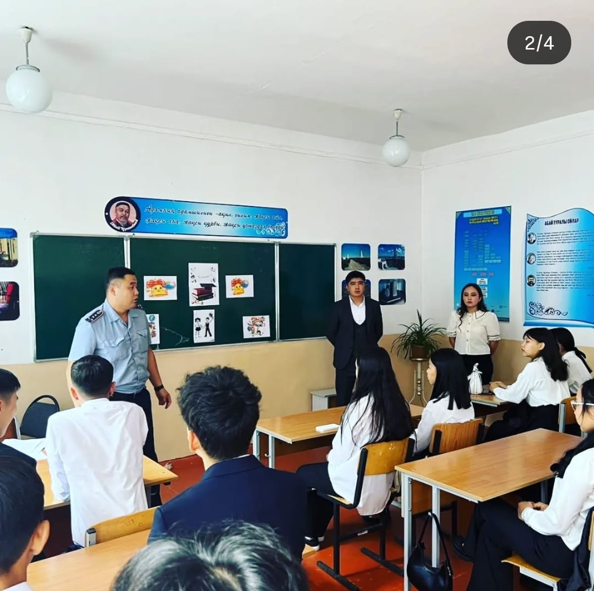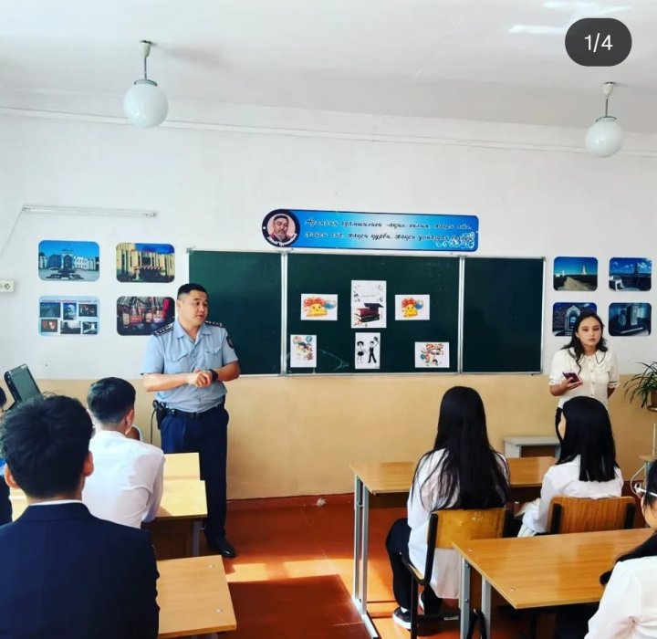 1 қыркүйек - Білім күні қарсаңында Семей ст. ЖПб Тб тергеушісі полиция аға лейтенанты Т.Жарылгап қатысуымен "Кәмелет жасқа толмаған жасөспірімдер арасындағы құқықбұзушылықтың алдын-алу және болдырмау". тақырыптарында 10-11 сыныптармен кездесу өтті.