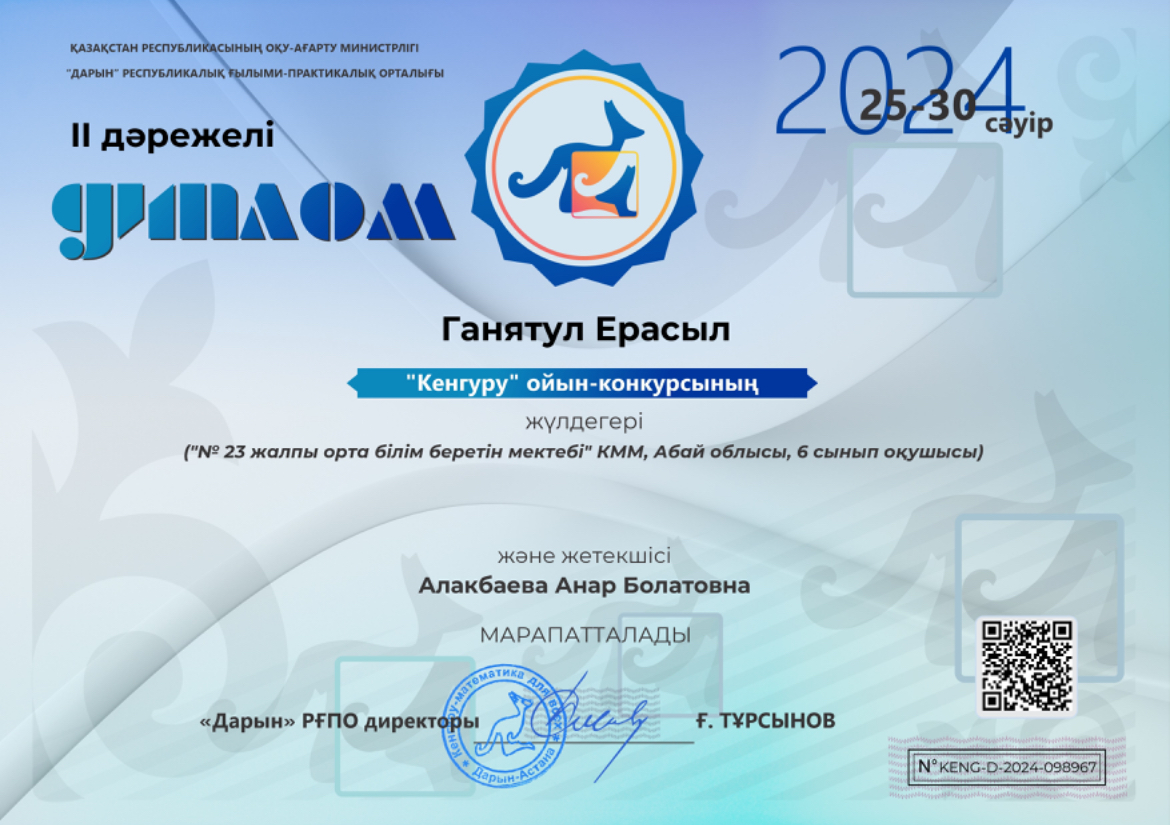 «Кенгуру» республикалық ойын-конкурсы » Средняя общеобразовательная школа №23