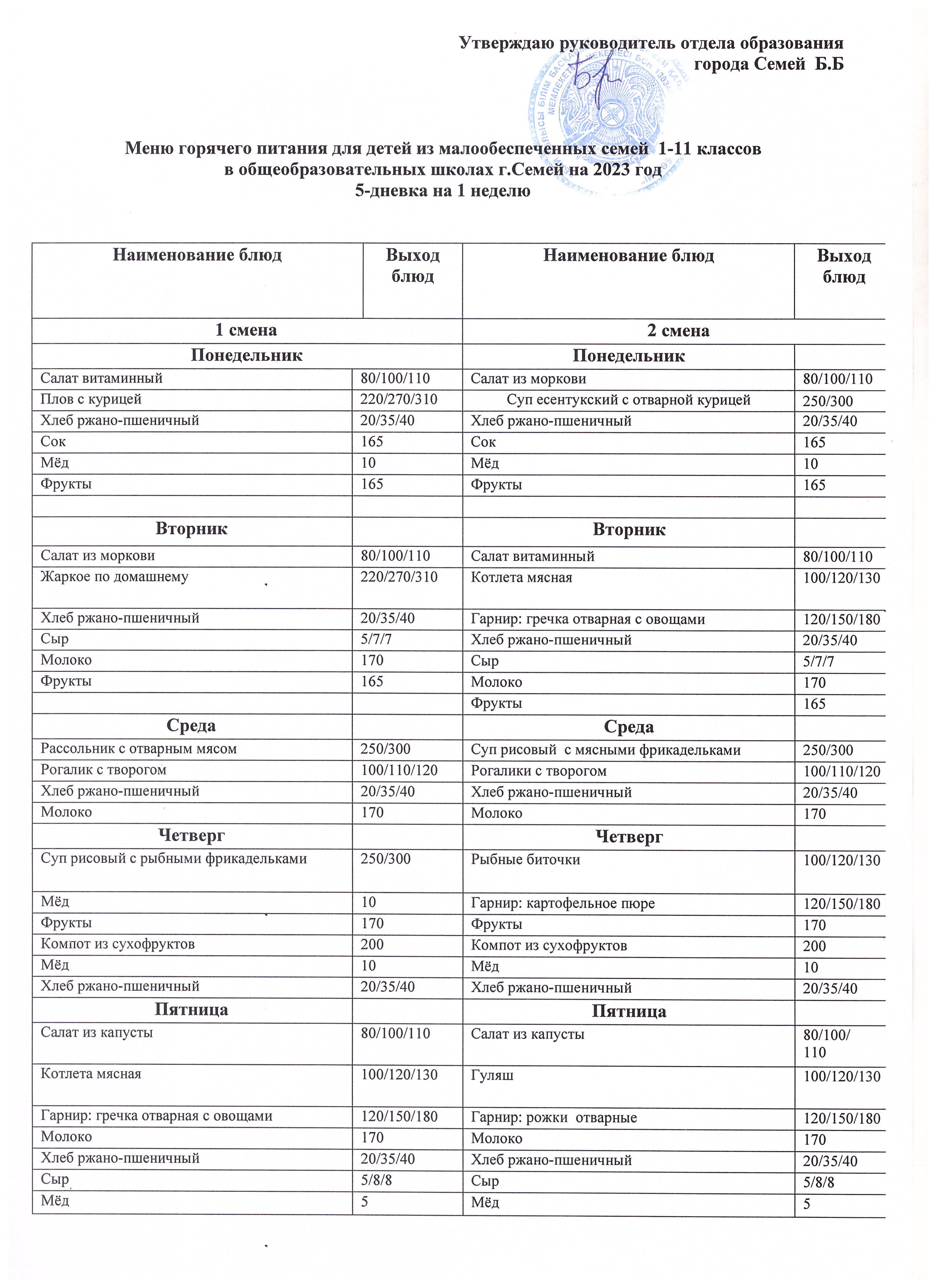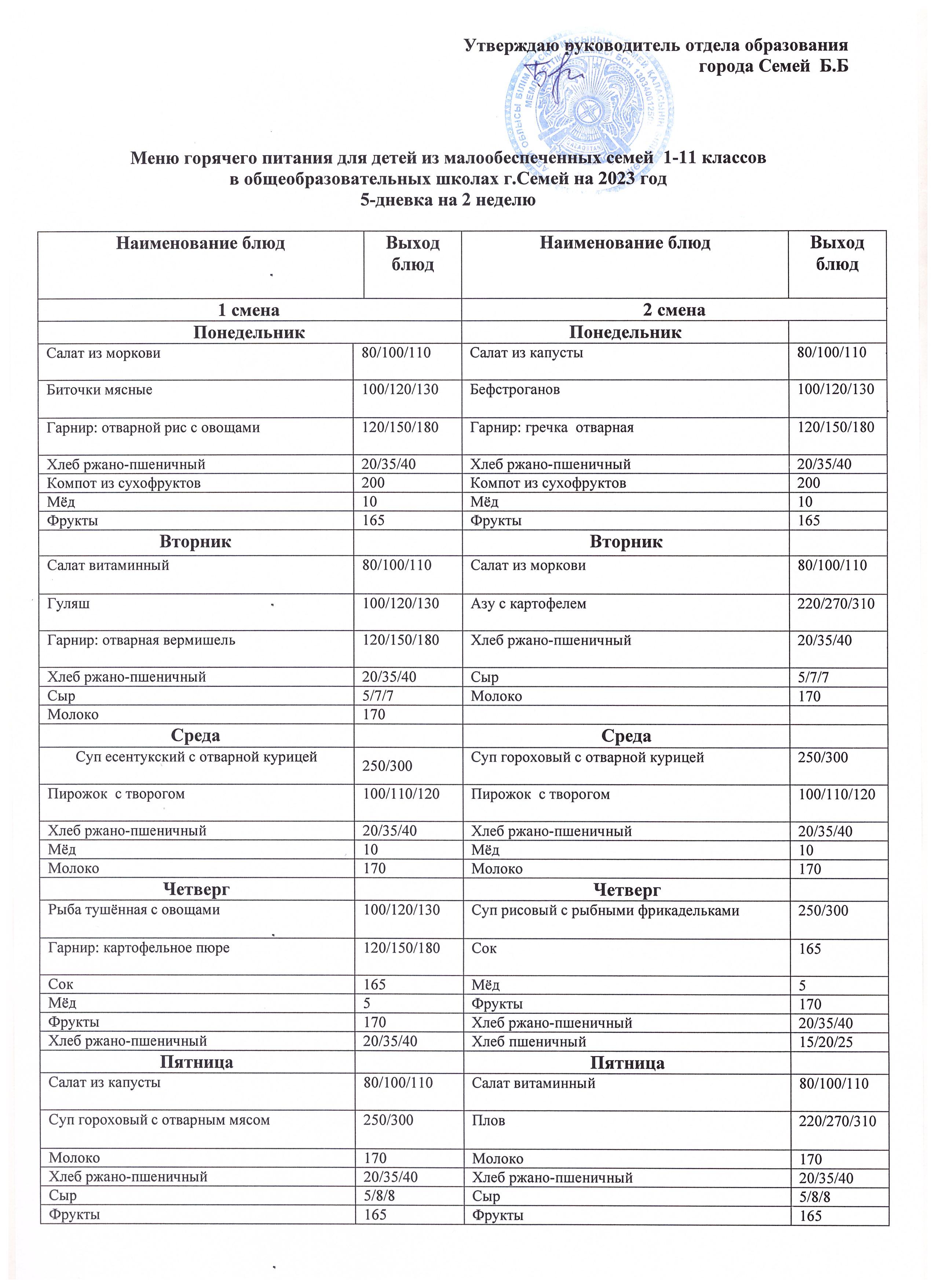 Асханадағы ас мәзірі » Средняя общеобразовательная школа №23
