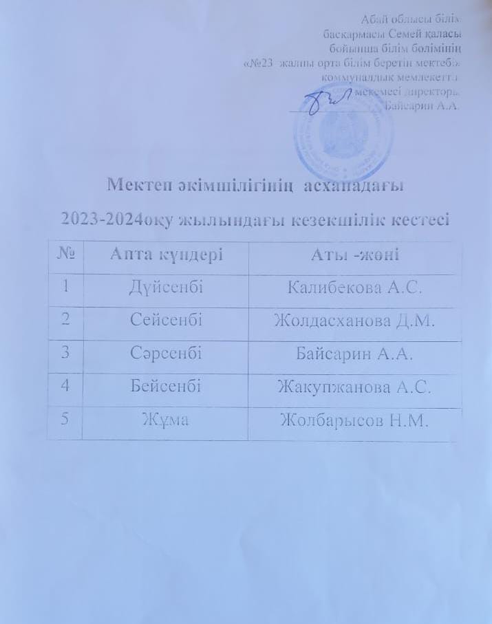 Мектеп әкімшілігінің асханадағы кезекшілік кестесі » Средняя общеобразовательная школа №23
