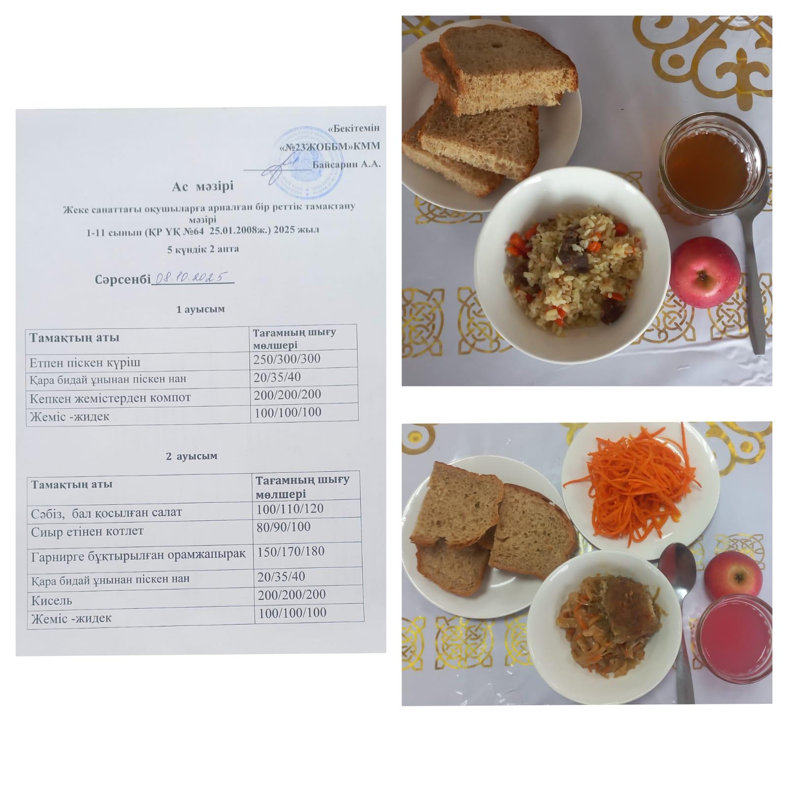 08 октябрь 2025 0 1 2 3 4 5 Жеке санаттағы оқушыларға арналған бір реттік тамақтану мәзірі 1-11 сынып 2025 жыл